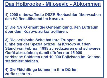 eine gemeinsame Plattform zur Aufnahme von Verhandlungen mit Belgrad zu verständigen, erklärt Milosevic die Offensive im Kosovo